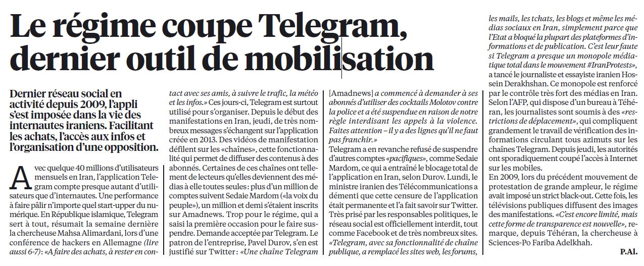 A censura do regime iraniano ao Telegram são outro sinal de que a aplicação é ótima, em termos de segurança (defesa da privacidade)?